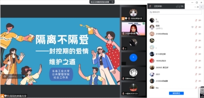 2022年4月23日19:40,350vip8888新葡的京集团开展第九场主题为《隔离不隔爱——封控期的爱情维护之道》大学生校园主题沙龙。本场活动邀请到张敏老师作为特约嘉宾,一起来和同学们谈谈如何维系甜蜜美好的爱情。