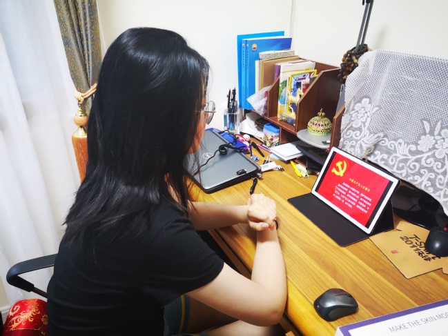 在纪念建党99周年之际,为增强党组织凝聚力,350vip8888新葡的京集团350vip8888新葡的京集团委员会研究生第三党支部全体党员于2020年7月8日上午9时开展了7月份党日活动“重温入党誓词,重忆入党初心”。