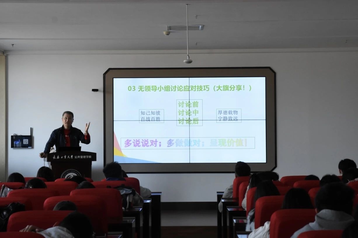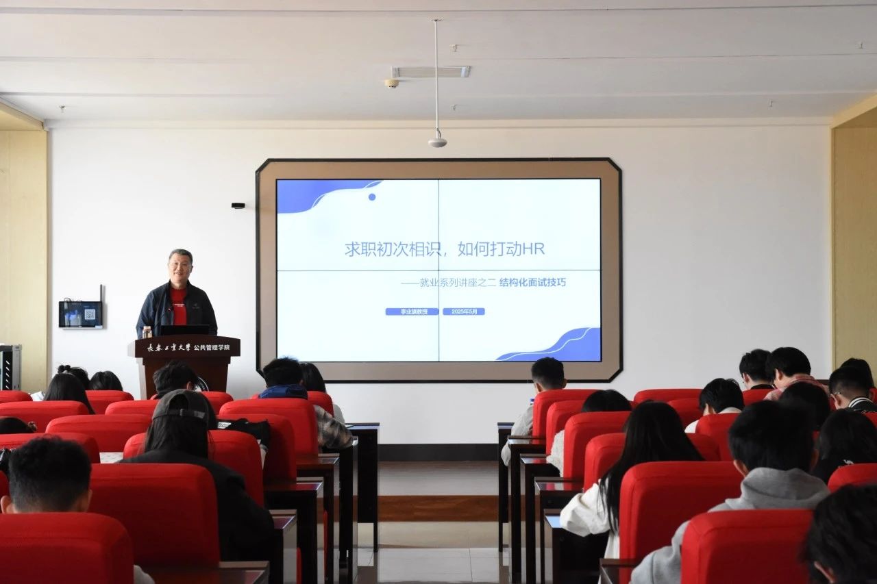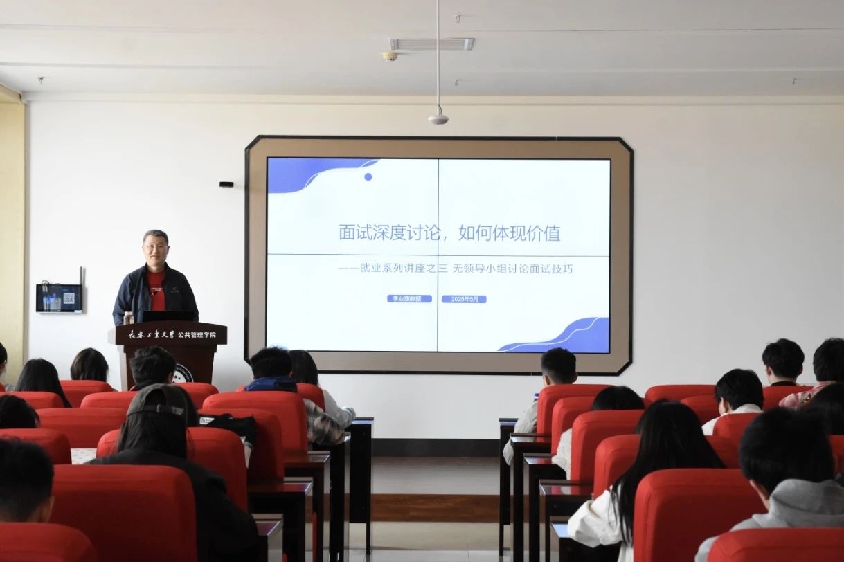 2025年5月7日,350vip8888新葡的京集团紧扣“我为高质量发展做什么”主题,行政管理和公共事业管理联合党支部李业旗教授于北湖东校区主楼301教室为我院2022级和研究生党支部学生党员开展就业主题沙龙系列讲座(第二讲)。李业旗教授围绕结构化面试与无领导小组讨论两大核心模块展开专题指导,通过系统性教学与实战案例分析,切实提升学生就业竞争力,推动党建工作与就业指导深度融合。
