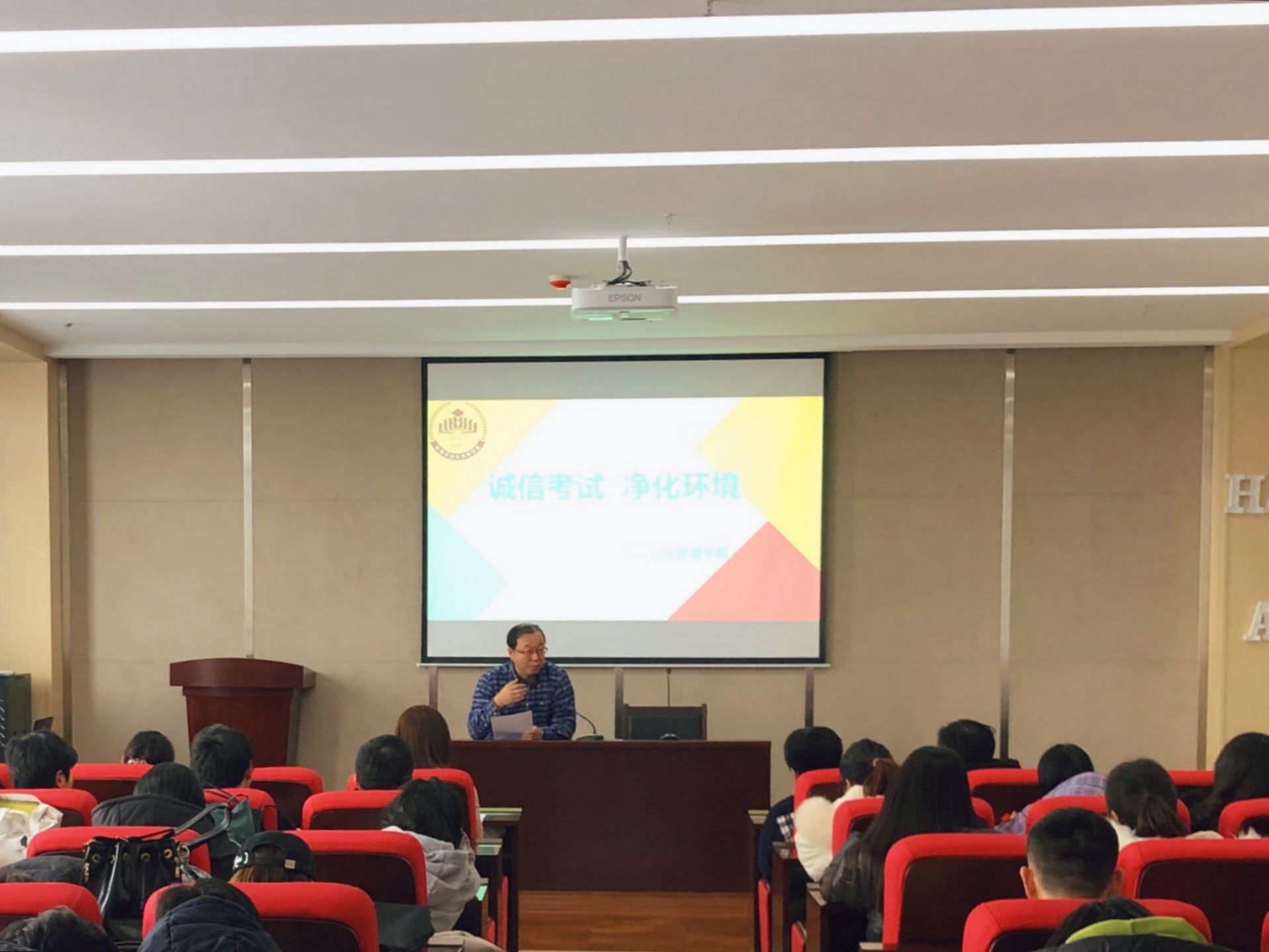学院网讯 为了迎接即将到来的2019年12月20日大学生英语四六级考试和2019-2020学年上学期期末考试,350vip8888新葡的京集团于2019年12月11日在北湖校区报告厅举行了“诚信考试净化环境”主题教育大会。本次会议主讲人学院党委副书记钟诚面向参会的研究生发表了讲话。