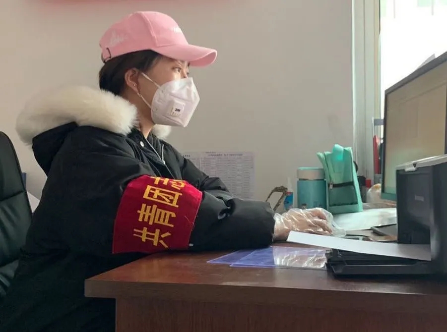 邢照阳同学见妈妈奋斗在疫情一线,心中尤为自豪。出于为国家,为社会做贡献的想法,她亦自告奋勇地向调兵山市两千平社区报名,成为了一名光荣的志愿者。邢照阳同学每天上午拿着一沓疫情防控的传单,挨家挨户的贴到门上,下午就坐在电脑旁登录本社区居民信息,她为自己能成为一名光荣的志愿者参与开展防疫工作感到自豪!