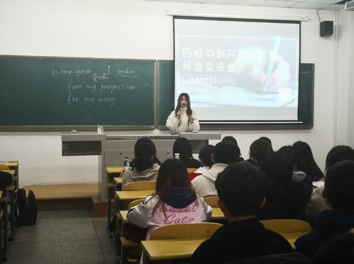 (通讯员:赵俊龙吕佳宁)为响应学院开展养成教育的号召,院学生会学习部开展为期百天的英语四级冲刺班。于3月20日在北湖校区主楼1730教室举行了开班仪式暨学习交流会,开班仪式特邀2018级辅导员哈那提别克·米乃老师主持。