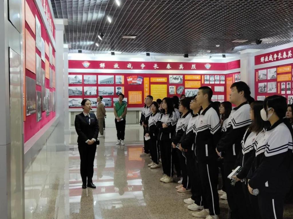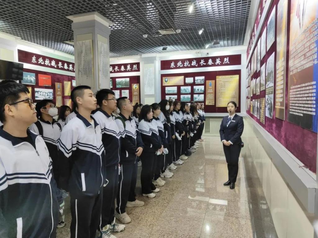 进入园内,150米长的下沉式甬道直达中心广场。这段甬道名为“英雄大道”,平整宽阔,一步步走来,大家的心情也随着步伐的前进逐渐平静。在工作人员的带领下,学生们认真学习参观了革命烈士纪念馆。馆内讲解员依次为同学们讲述了九一八事变、东北抗日联军、西安事变、八一五东北光复、解放战争长春站、三下江南、解放锦州、辽西大会、抗美援朝等恢弘历史,革命先烈的一幕幕事迹此刻正呈现在同学眼前,这也让同学们充分理解了何为“天下兴亡、匹夫有责”的爱国情怀,深刻体会到了何为“视死如归、宁死不屈”的民族气节,何为“不畏强暴、血战到底”的英雄气概,何为“百折不挠、坚韧不拔”的必胜信念。