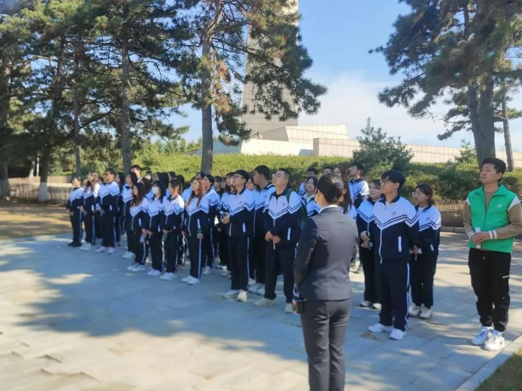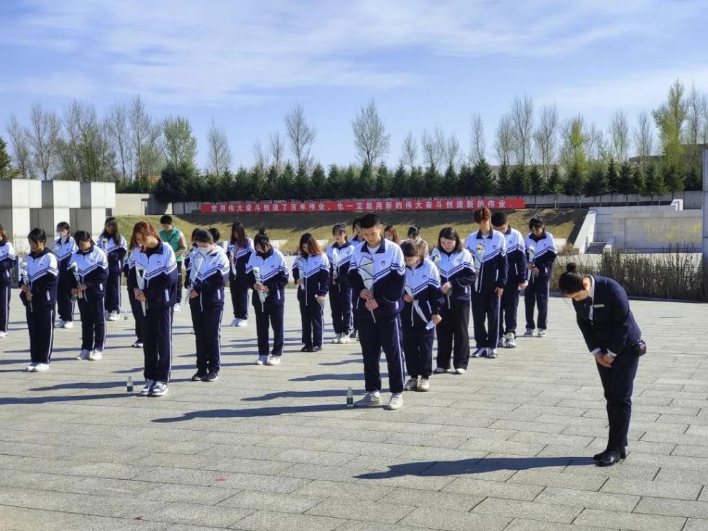 缅怀英烈祭英魂,抚今追昔思奋进。在了解了杨靖宇、陈翰章、梁士英等烈士不屈不挠的英勇事迹后,在场同学带着深深的敬意来到烈士纪念碑,为烈士默哀,并献上捧在胸前的那一束鲜花。在此刻,同学们将深刻铭记革命先烈们伟大的英雄无畏气概和坚毅民族魂魄,去缅怀为这片热土而牺牲的人民英雄。随后在社工的指引下同学们向革命烈士致辞,共同向先烈致敬。他们带着梦想展翅,怀着向往奋飞,发扬革命精神,将缅怀英烈的情感融入新时代精神,谱写新的青春之歌。