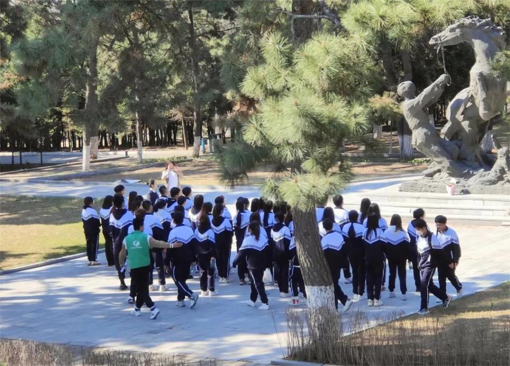 纪念碑再向北,就到了陵园,一排排整齐的墓碑,沐浴在春日的阳光中,依苍松翠柏为伴。在工作人员的带领下,同学们依次参观了巍然浩气主题雕塑、刘英俊勇拦惊马雕塑、长春市见义勇为纪念广场、吉林公安英烈纪念广场等历史纪念地。一路上,同学们带着敬畏探索历史、铭记历史、学习历史,从历史中汲取力量,在历史中坚定信念。