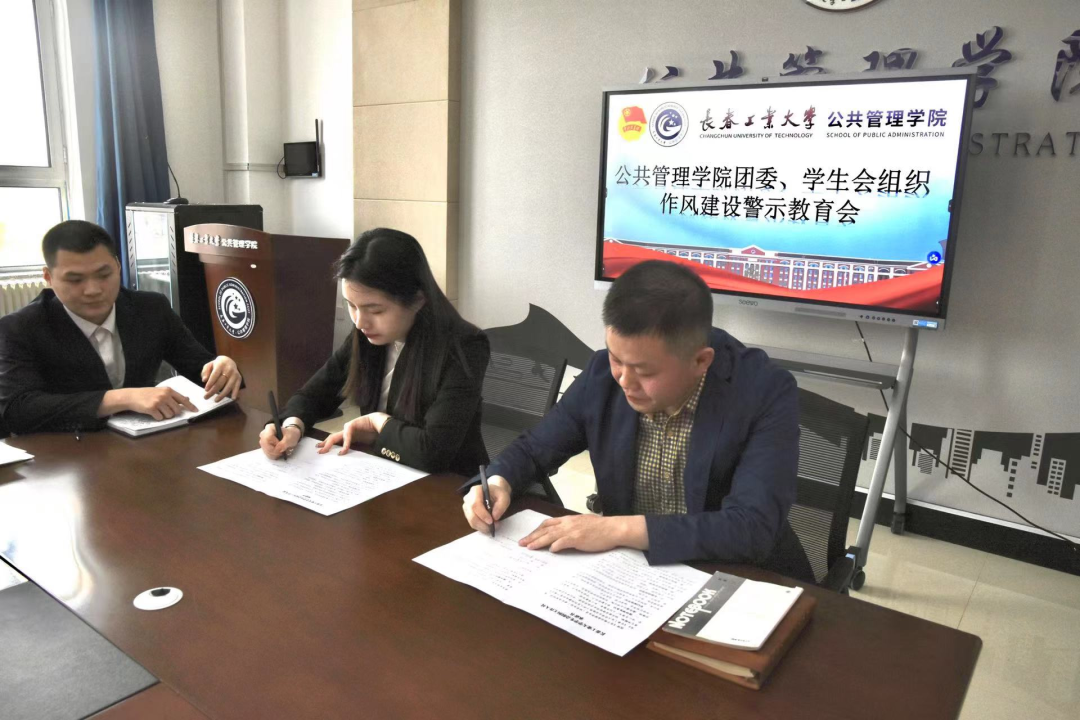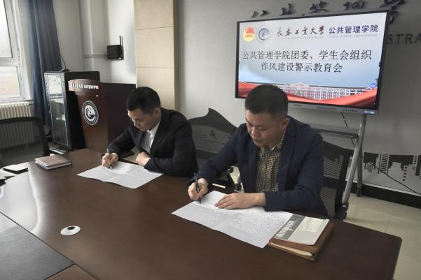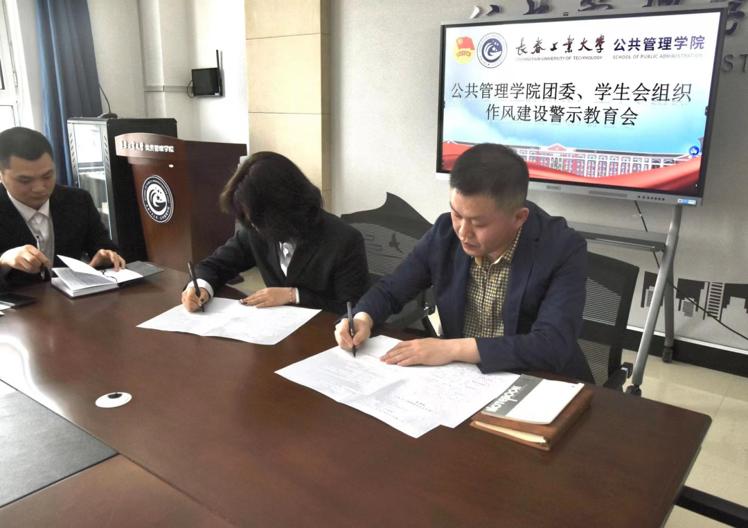 各部门负责人员认真聆听陈磊老师的讲话后,在《350vip8888新葡的京集团学生会组织工作人员承诺书》中签字。