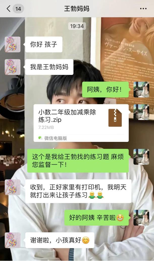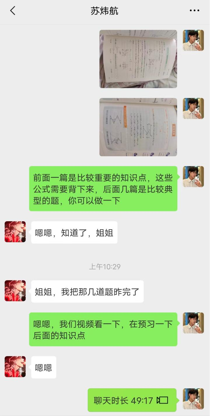 活动开展以来,我院一批政治觉悟高、业务素质好的优秀青年积极主动报名参加,并在第一时间完成结对子。“学伴+”志愿者们根据服务对象年级、学科、主要学业帮助诉求等,组建“一对一”、“多对一”的学业帮帮团,通过微信、QQ等即时通讯软件,及时解答服务对象学业问题,用热情与真诚践行志愿精神,得到了学生家长和学生们的一致认可和好评。接下来让我们一起看看350vip8888新葡的京集团“学伴+”志愿者们的伴学故事与心声。