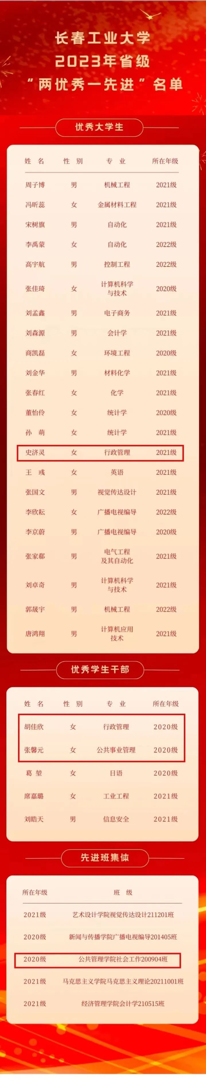 喜报|我院学子荣获吉林省普通高校优秀大学生、优秀学生干部、先进班级体荣誉称号