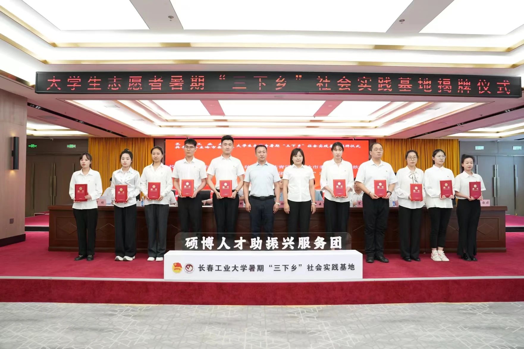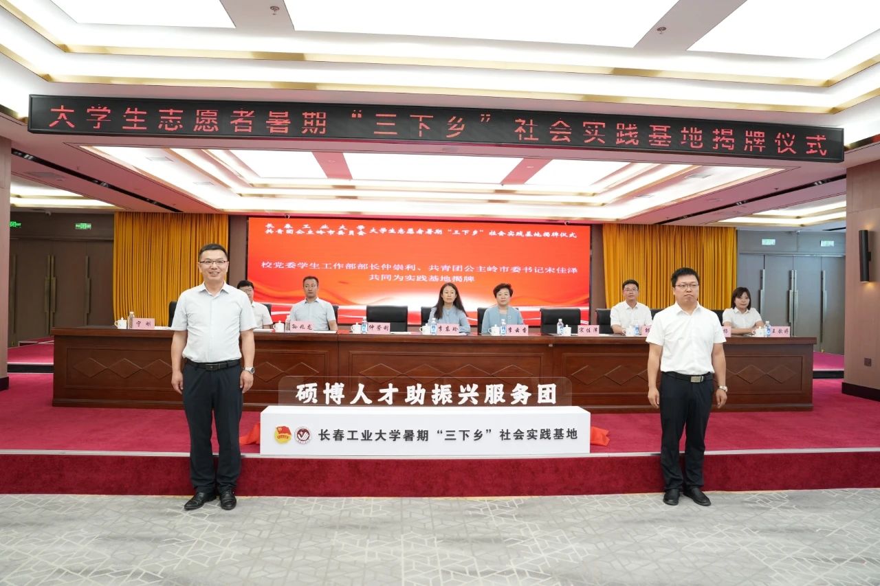 学校与共青团公主岭市委员会共建社会实践基地暨“硕博助振兴计划”揭牌仪式在公主岭市举行。学校党委副书记李东玲教授讲话,公主岭市委副书记李云香致欢迎辞;学校党委学生工作部部长仲崇利、共青团公主岭市委书记宋佳泽共同为实践基地揭牌;学校党委研究生工作部部长孙兆龙、共青团公主岭市委副书记王歆婷共同为“硕博人才助振兴计划”团建指导员颁发聘书;公主岭市河南街道团工委书记张敬昊代表公主岭市各乡镇街道讲话;“硕博人才助振兴计划”团建指导员聂子航代表我校团建指导员进行了发言。