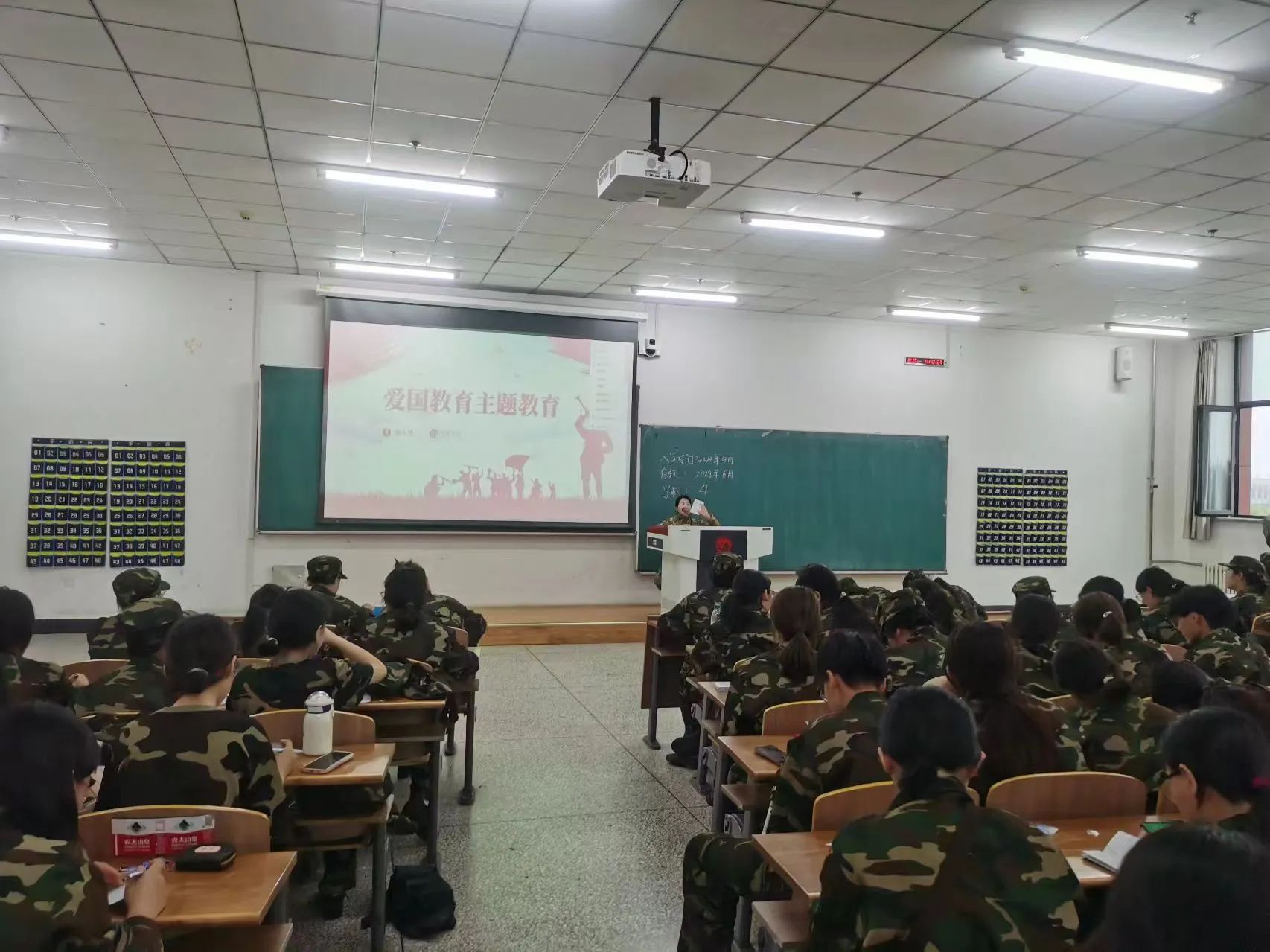 随后,老师从爱国、励志、求真、力行四个方面对同学们提出要求:一是要忠于祖国,忠于人民;二是要立鸿鹄志,做奋斗者;三是要求真学问,练真本领;四是要知行合一,做实干家。最后,她希望同学们在未来大学生活中能够勤学善思、拓宽视野、全面发展,努力成长为堪当时代重任的栋梁之才。