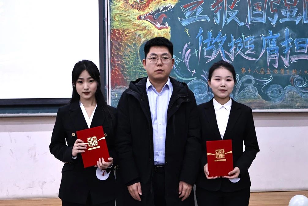 经过我院层层选拔,我院王欣月同学凭借出色的主持技巧和独特的个人魅力,成功晋级我校决赛。在决赛中,王欣月同学面对来自各学院的优秀选手和在场的评委、观众,展现出扎实的主持功底和应变能力。无论是自我介绍时的娓娓道来,还是即兴主持时的机智应变,都赢得了评委和观众的阵阵掌声与高度赞誉。