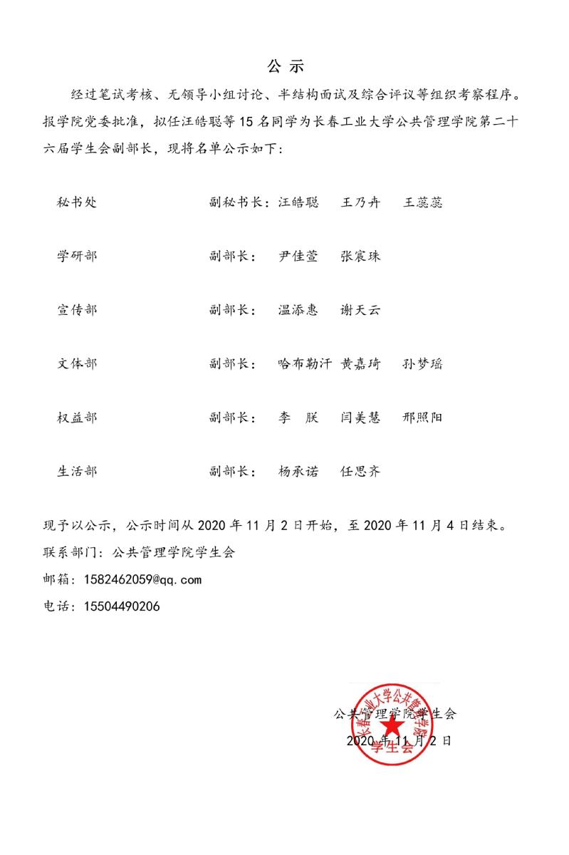 350vip8888新葡的京集团350vip8888新葡的京集团第二十六届学生会学生干部名单公示