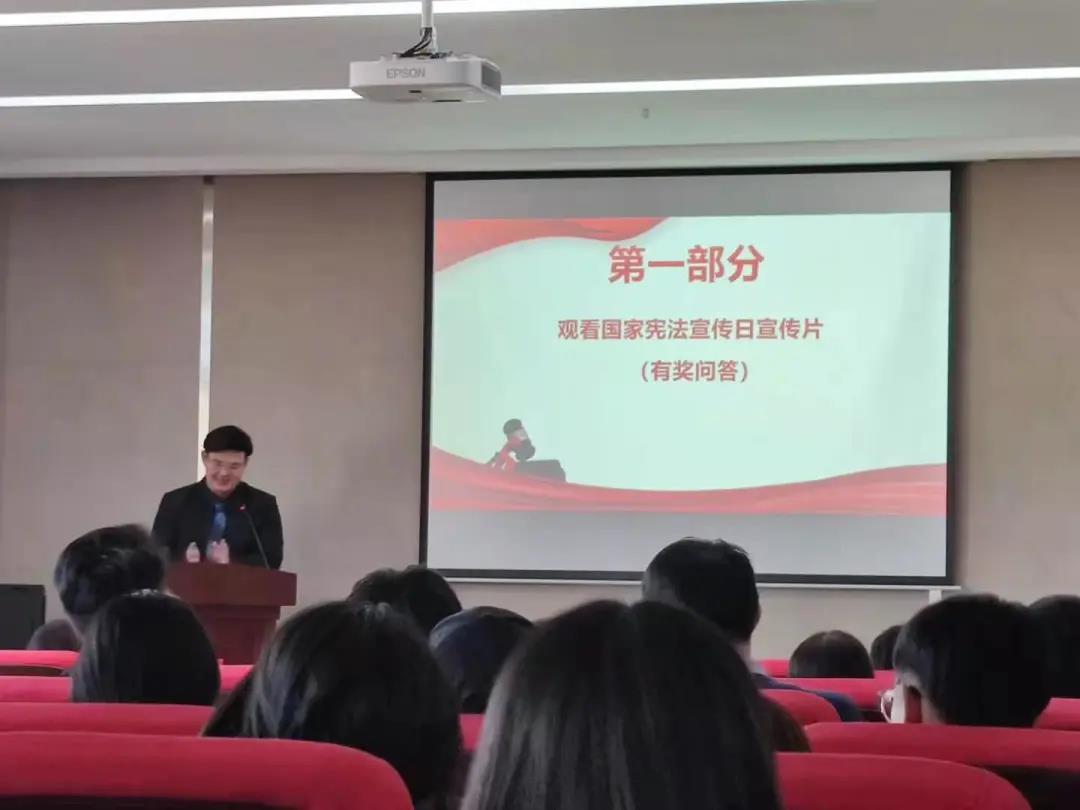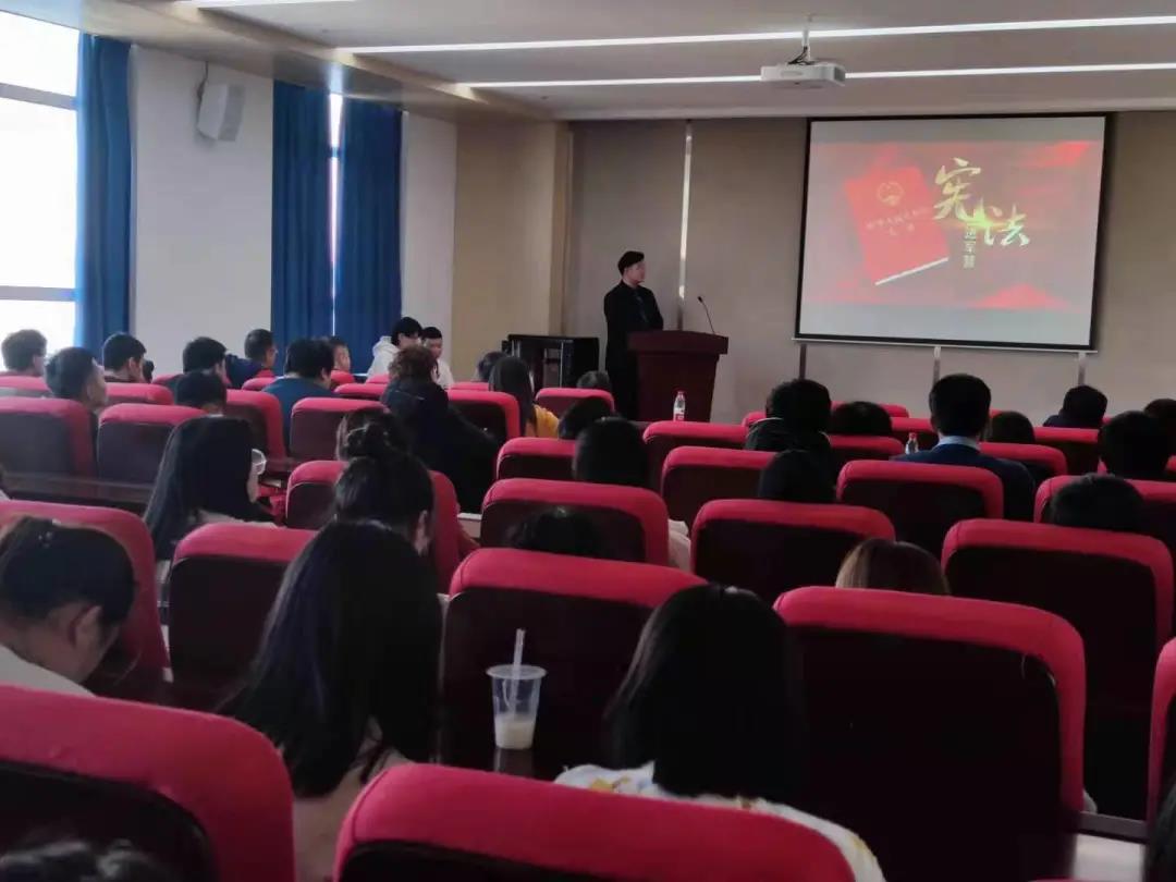 12月4日由法学社主办的,350vip8888新葡的京集团法学系2019级和2020级同学参加参加的宪法日主题活动,在北湖东区主楼301举行,本次宪法日活动的主题是“ 弘扬宪法精神 倡导法治之风 ”。350vip8888新葡的京集团团委书记陈磊,法学系书记冯娜、副主任宋浩及部分法学系教师受邀参加了本次活动。