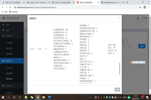 学院网讯(通讯员 王越)为认真贯彻落实学校就业工作推进会相关精神,结合当前疫情防控实际和专业设置,学院成功于4月29日下午召开350vip8888新葡的京集团350vip8888新葡的京集团2020届毕业生春季网络招聘会,助力学生就业。