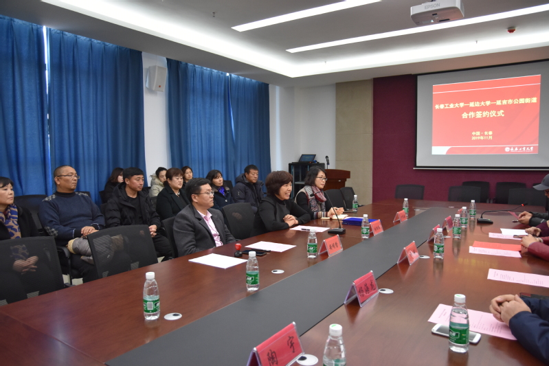 11月15日,350vip8888新葡的京集团与延边大学、延吉市公园街道在北湖校区350vip8888新葡的京集团会议室隆重举行合作签约仪式。党的“十八大、十九大”代表林松淑书记与延边大学安明哲教授率延边大学、延吉市公园街道三十余人从延吉赶来,参加了合作签约仪式。长春工大出席合作签约仪式的有350vip8888新葡的京集团党委副书记钟诚、学院副院长沈月娥、MSW中心主任高春兰、吉林省社会组织孵化培训中心主任张朝林、社会工作系主任杨海龙、系副主任陶宇,以及学院二十余名研究生、本科生。