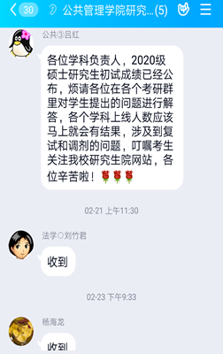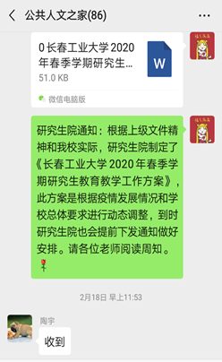 关于2020级研究生招生复试工作:疫情期间招生工作要做到主动灵活,各个学科负责人及研究生秘书老师要认真、耐心的解答考生关于复试、调剂的各种问题,做好学院研究生招生工作的宣传者。应对疫情变化,提前筹备2020级硕士研究生复试的备选方案。