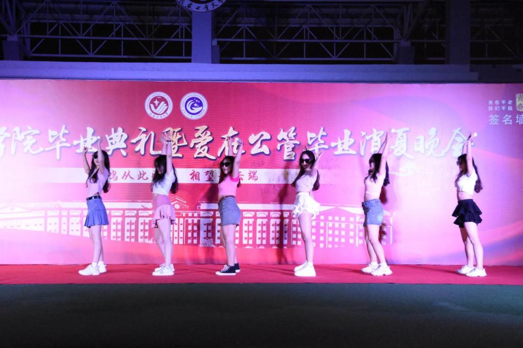 “爱在公管”毕业消夏晚会分为 “以梦为马,行远自迩”、“不说再见,还会遇见”、“青春,自定义”三个部分,节目包括歌曲、萨克斯乐器演奏、舞蹈等,最后,晚会在所有演出师生合唱《明天会更好》中落下帷幕。