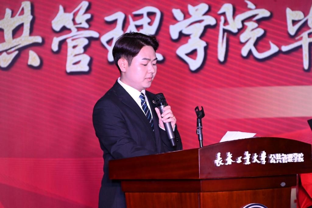 院长韩小威致辞,在致辞中表达了对毕业生们的期盼,给予他们深切的期望:不断砥砺家国情怀,争当强国有我的担当者;不断砥砺至善情怀,甘当崇德修身的笃行者;不断砥砺奋斗情怀,勇当矢志不移的先锋者。并衷心祝愿同学们一帆风顺、一路生花、一生清澈!