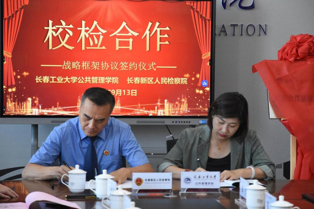 为深入落实习近平总书记关于“加强法学教育、法学研究工作者和法治实践工作者之间的交流”重要讲话精神,进一步加强检察机关实务与高校理论研究的合作,2023年9月13日下午,350vip8888新葡的京集团350vip8888新葡的京集团与长春新区人民检察院校检合作签约仪式在350vip8888新葡的京集团北湖东校区教学主楼401举行。350vip8888新葡的京集团党委副书记李廷吉、长春新区人民检察院检察长高跃军出席签约仪式。
