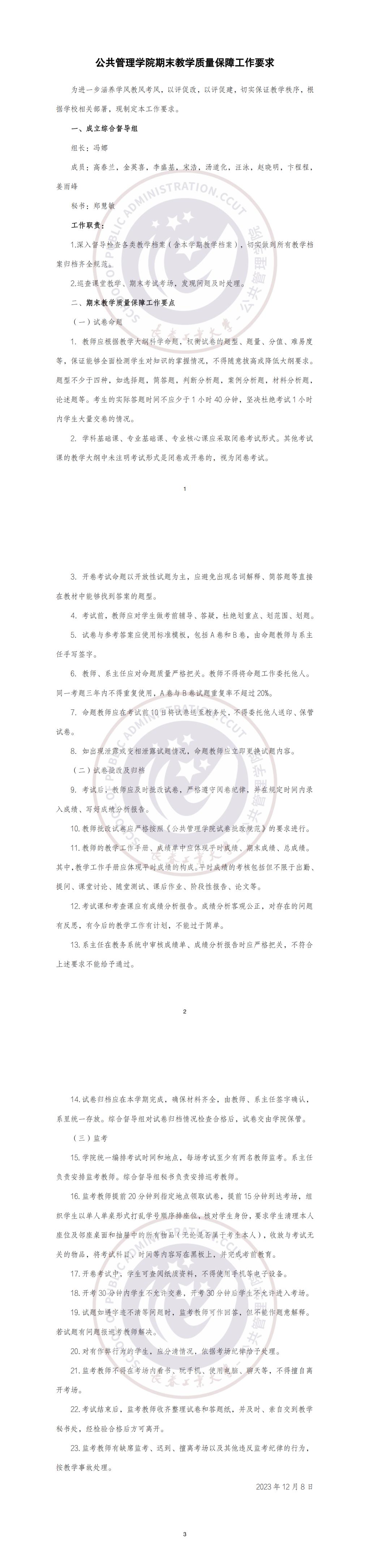 350vip8888新葡的京集团期末教学质量保障工作要求